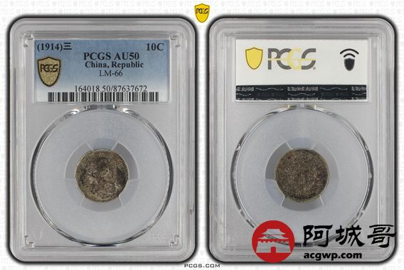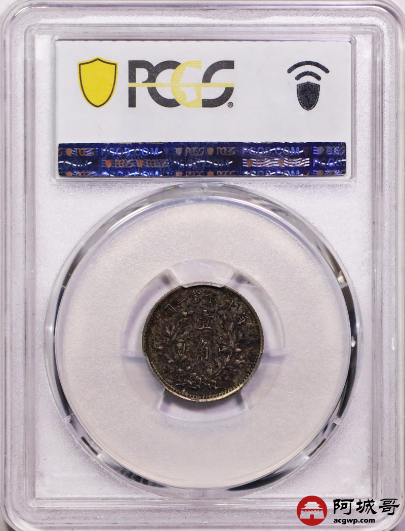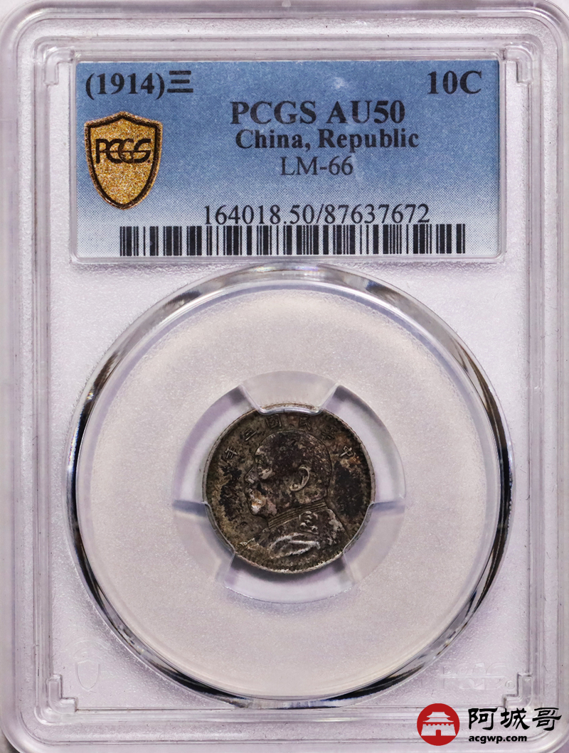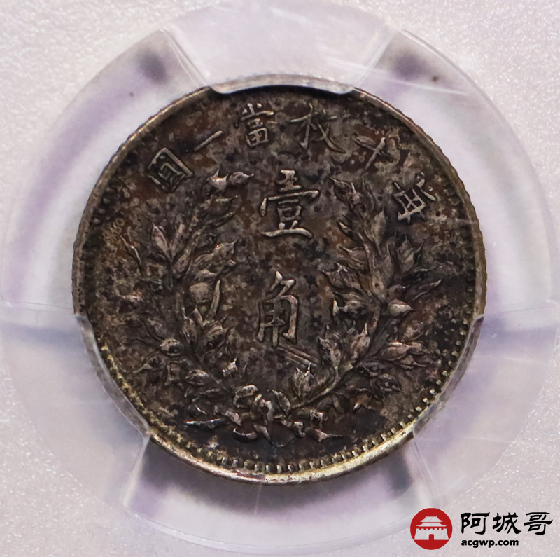 Lot:6 原味酱彩老包浆 三年大头壹角 PCGS AU50
