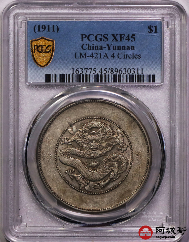Lot:19 黄油底板 云南大困龙七钱二分 PCGS XF45