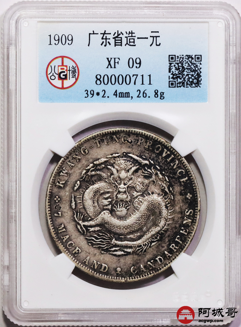 Lot:35 原味老包浆 广东宣统七钱二分 公博 XF09