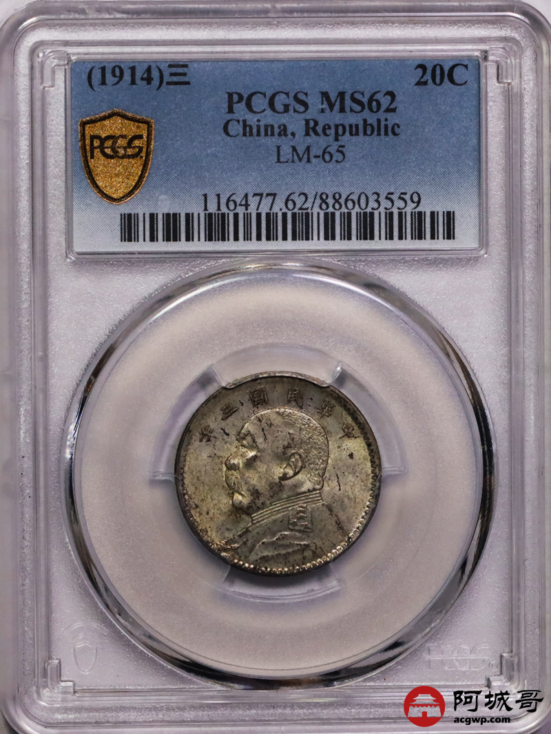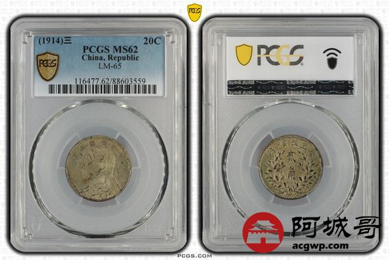 Lot:13 黄油原光三年大头贰角 PCGS MS62