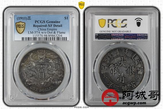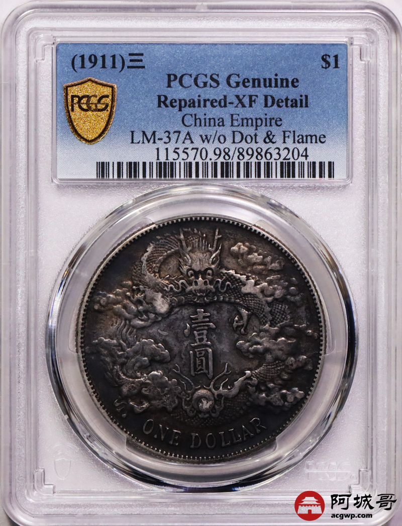 Lot:5 原味 黑包浆 大清宣三壹圆 PCGS XF