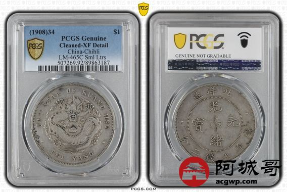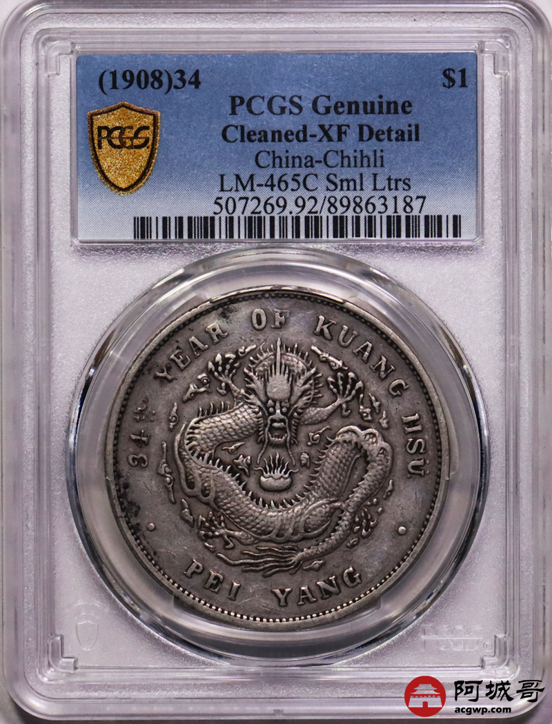 Lot:14 原味老包浆 北洋34七钱二分 小字版 PCGS XF